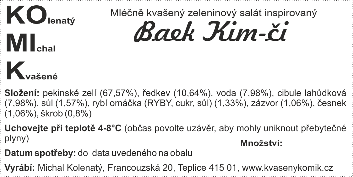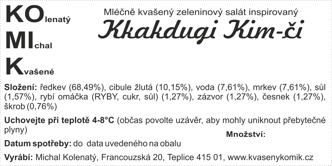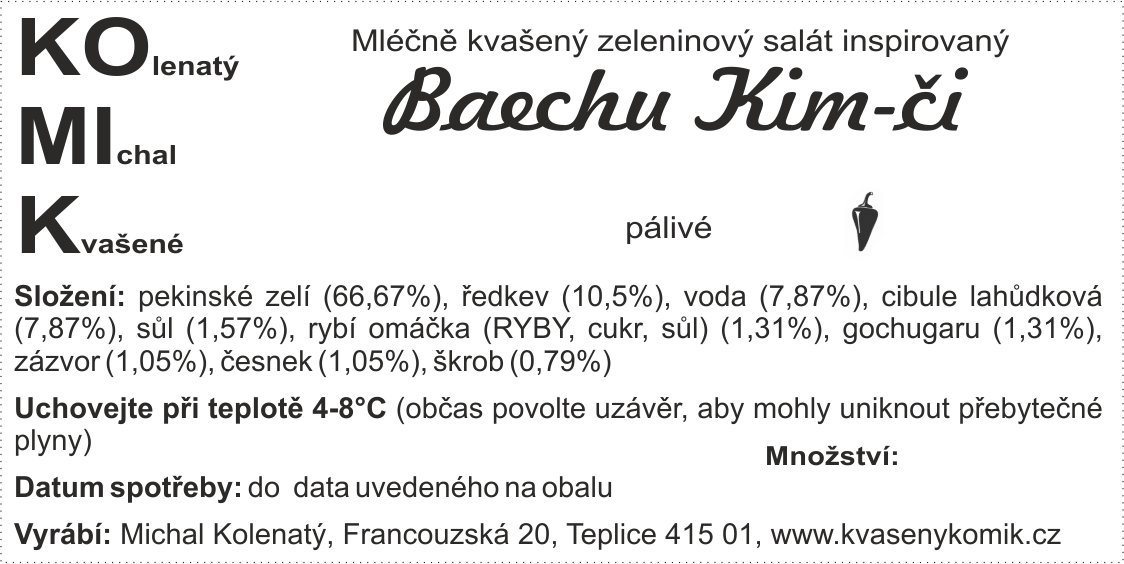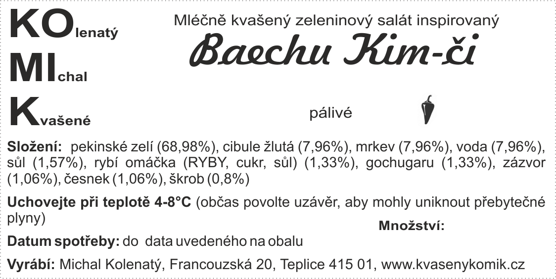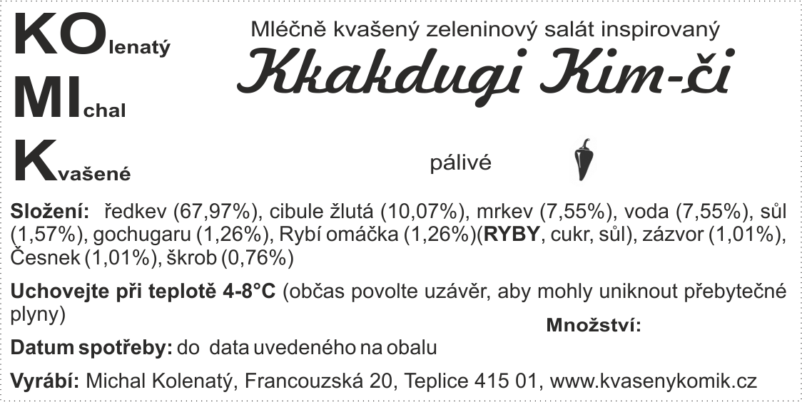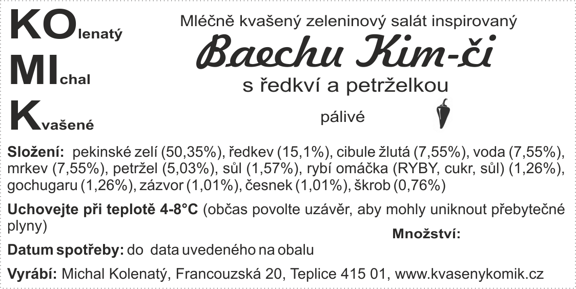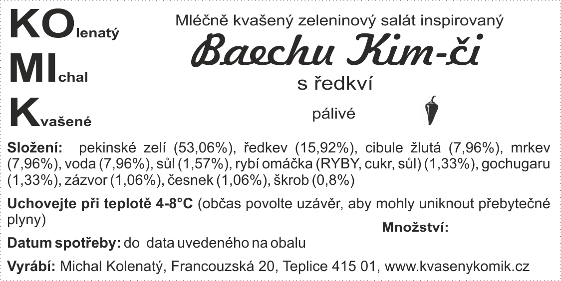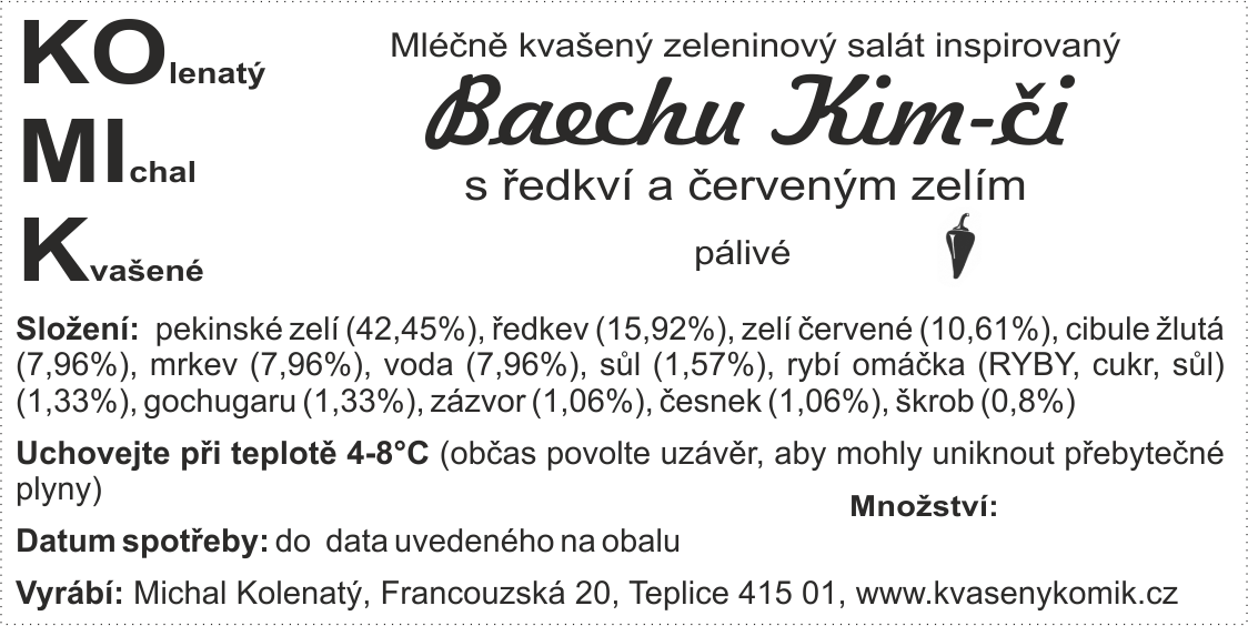 Když se v Evropě řekne Kim či, většina lidí si představí červeně zbarvenou zeleninovou směs ve, které je hlavní surovinou pekingské zelí. Dalšími základními surovinami je ředkev, cibule nebo čínská pažitka, zázvor, rybí omáčka nebo pro vegetariány sojová omáčka, česnek, rýžová mouka nebo ovoce, které slouží jako základní zdroj živin pro mikroorganismy mléčného kvašení. A nakonec je možné přidat i další zeleniny obvykle mrkev, a méně obvykle celer, petržel ... .